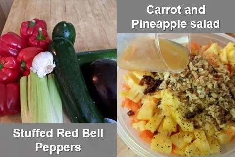 As summer warm beckons we look for lighter meal alternatives. I needed an interesting and colorful plate (not yet quite for a picnic) for a Saturday supper. So, I decided to add Stuffed Red bell peppers and Carrot and Pineapple salad to the menu.